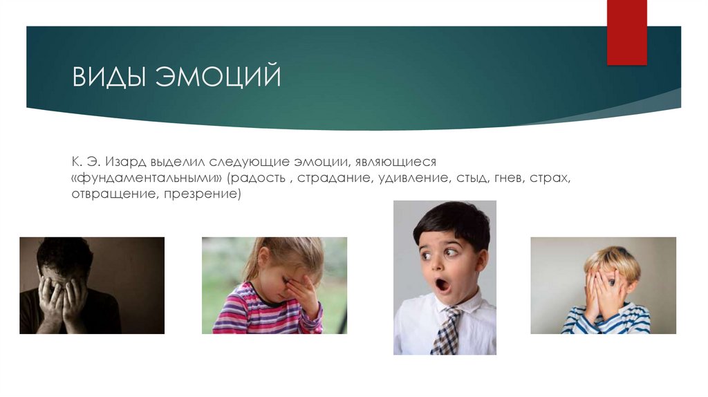 ВИДЫ ЭМОЦИЙК. Э. Изард выделил следующие эмоции, являющиеся