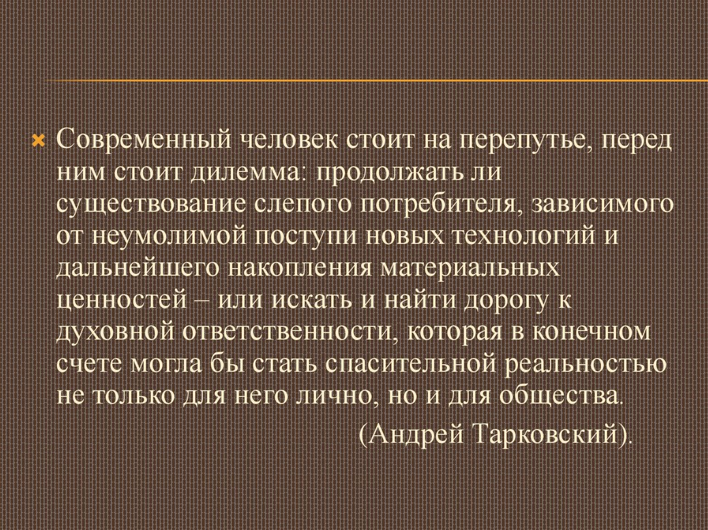 Современный человек стоит на перепутье, передним стоит дилемма: продолжать ли