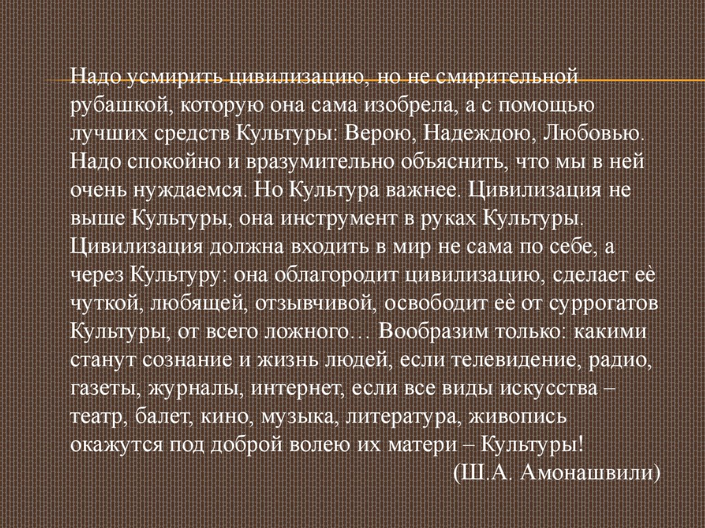 лучших средств Культуры: Верою, Надеждою, Любовью.