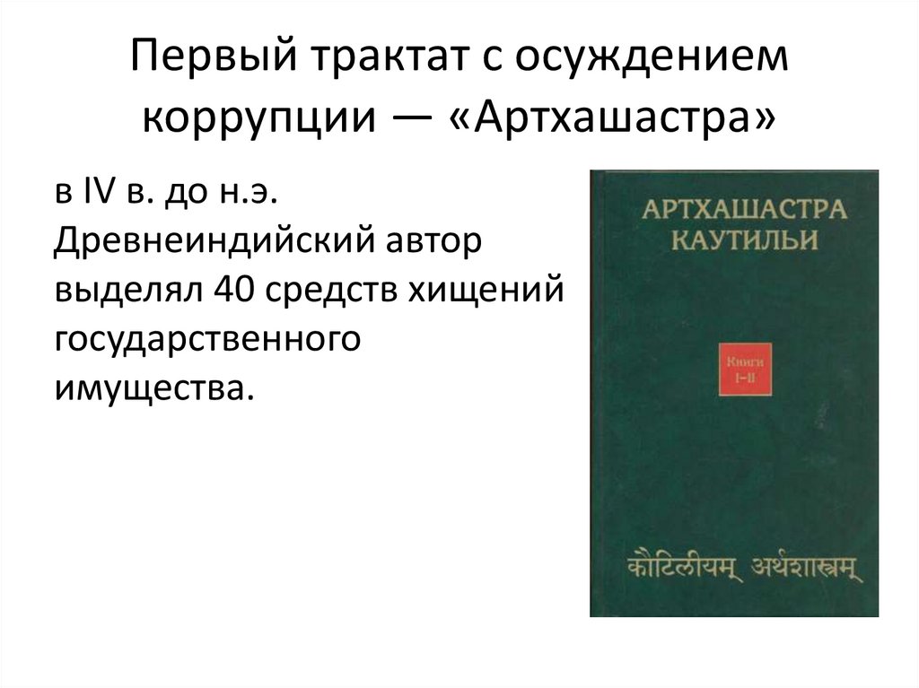 Первый трактат с осуждениемкоррупции — «Артхашастра»