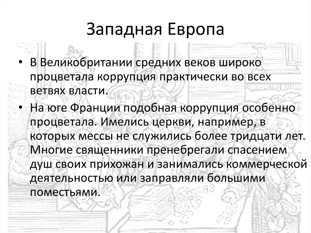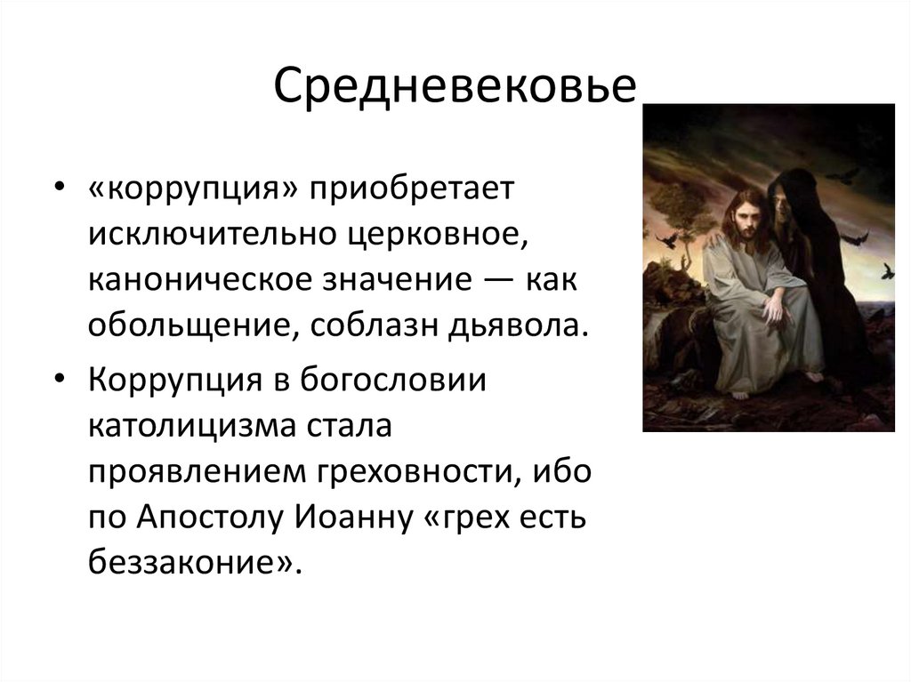 Средневековье• «коррупция» приобретает