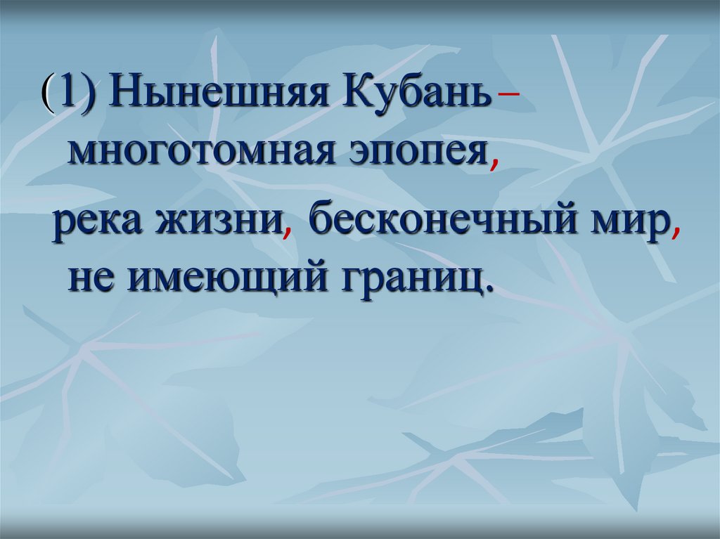 (1) Нынешняя Кубань −многотомная эпопея,