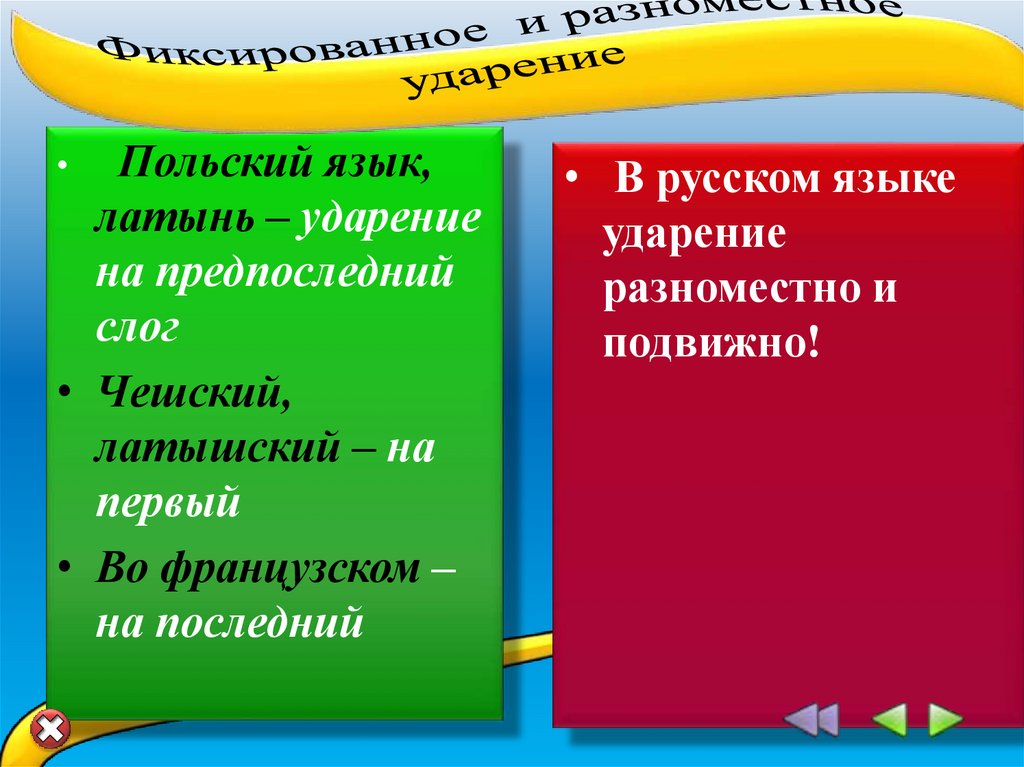 ударение в русском языке разноместно.