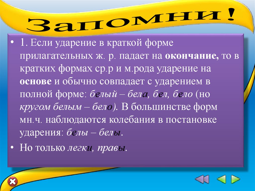 • 1. Если ударение в краткой формеприлагательных ж. р. падает на окончание, то в