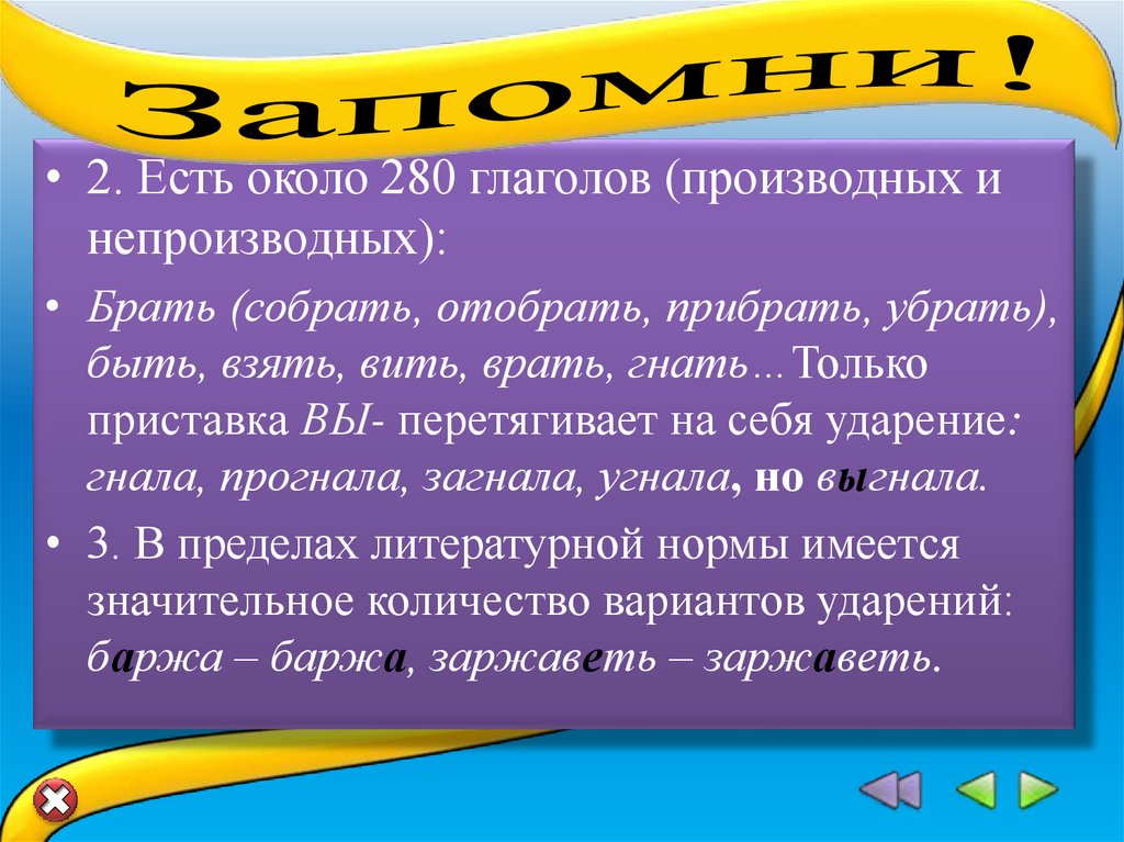 • 2. Есть около 280 глаголов (производных инепроизводных):