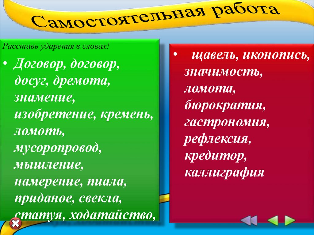 Расставь ударения в словах!• Договор, договор,