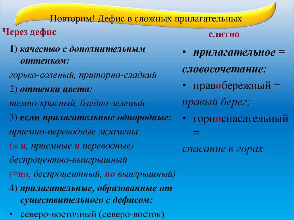 Повторим! Дефис в сложных прилагательныхЧерез дефис