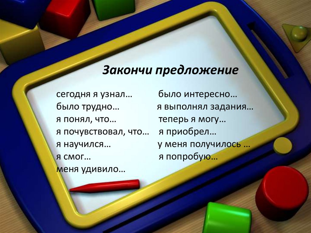 Закончи предложениесегодня я узнал…