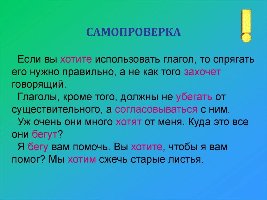 САМОПРОВЕРКАЕсли вы хотите использовать глагол, то спрягать