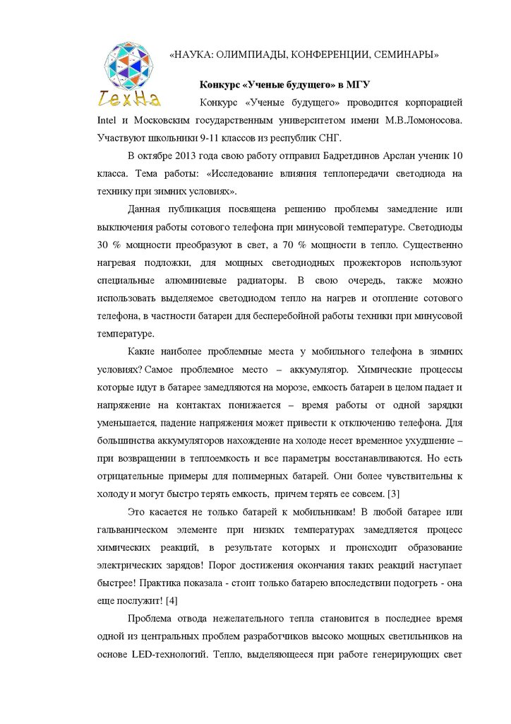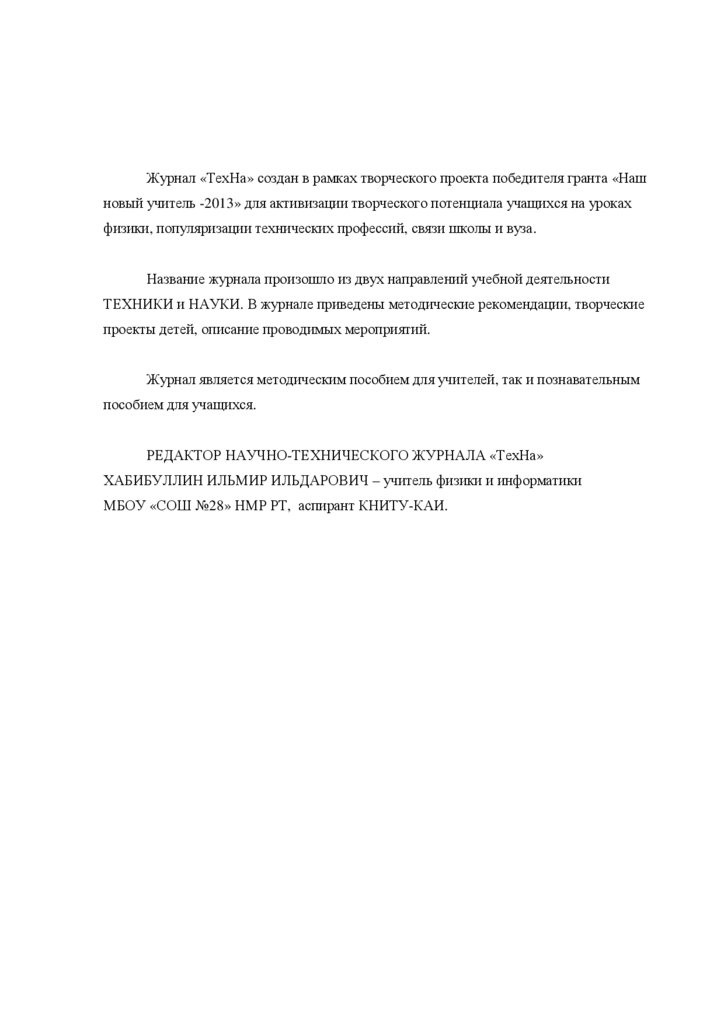Журнал «ТехНа» создан в рамках творческого проекта победителя гранта «Нашновый учитель -2013» для активизации творческого потенциала учащихся на уроках