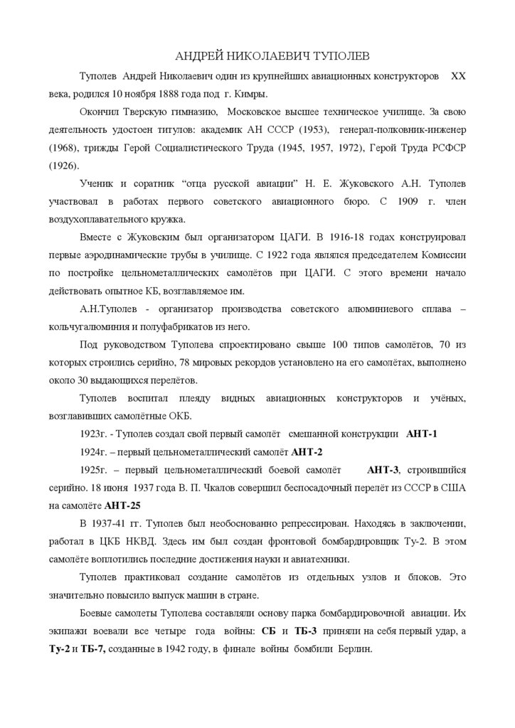 АНДРЕЙ НИКОЛАЕВИЧ ТУПОЛЕВТуполев Андрей Николаевич один из крупнейших авиационных конструкторов