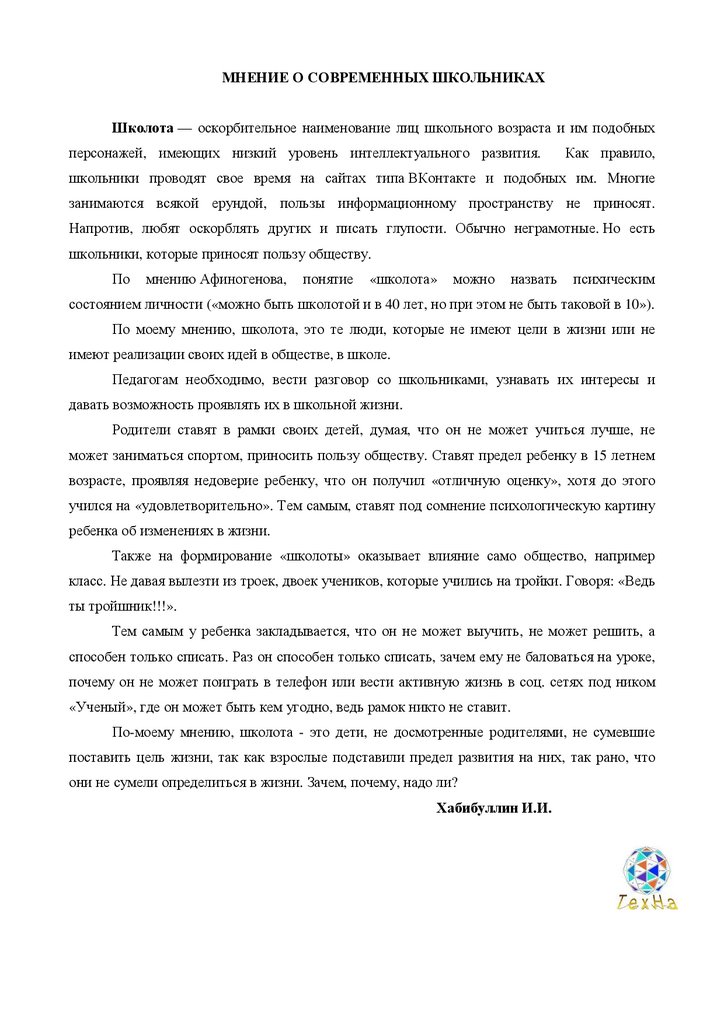 МНЕНИЕ О СОВРЕМЕННЫХ ШКОЛЬНИКАХШколота — оскорбительное наименование лиц школьного возраста и им подобных