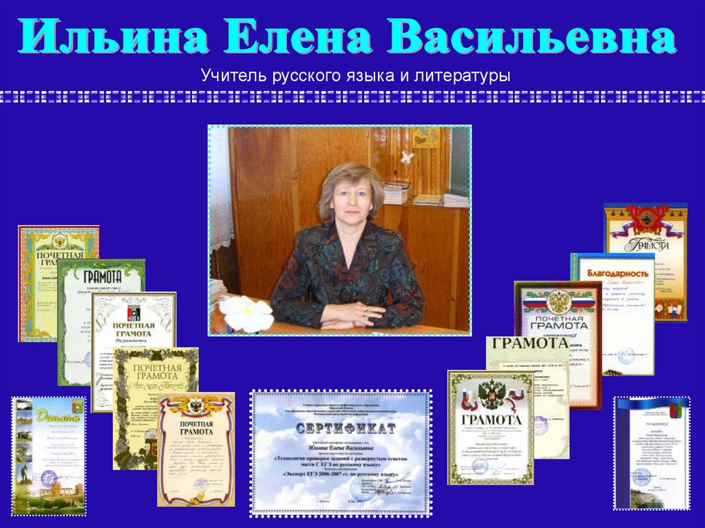 Ильина Елена Васильевна,учитель русского языка и литературы