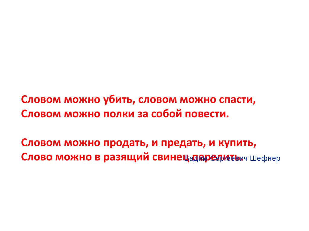 Словом можно убить, словом можно спасти,Словом можно полки за собой повести.