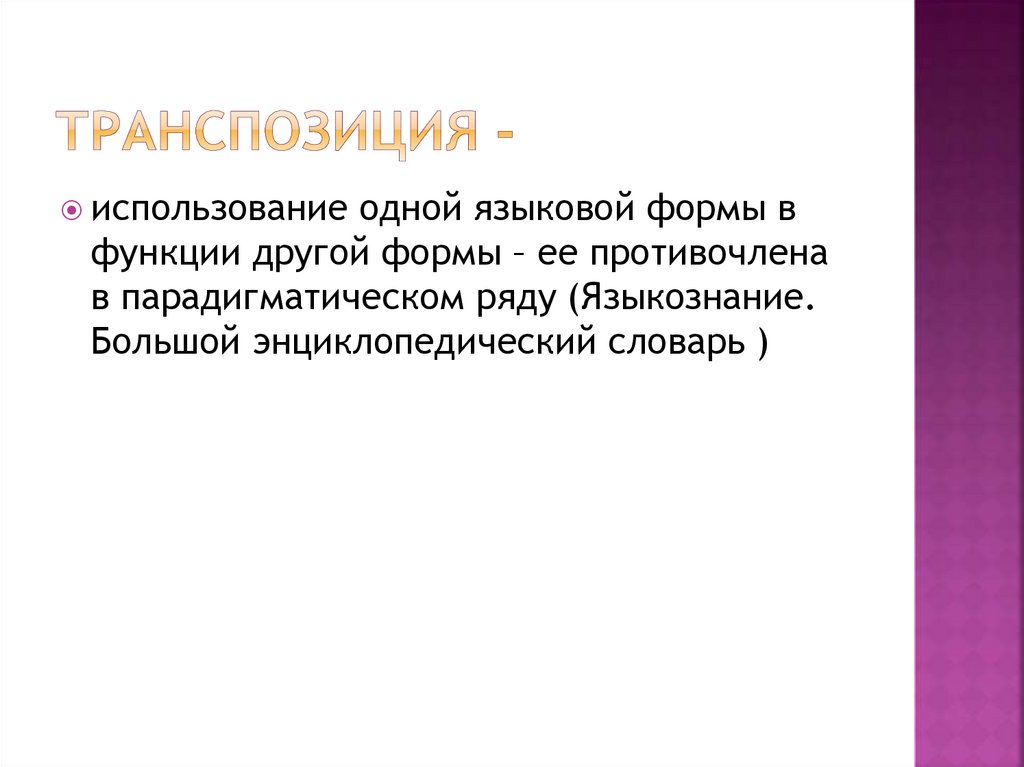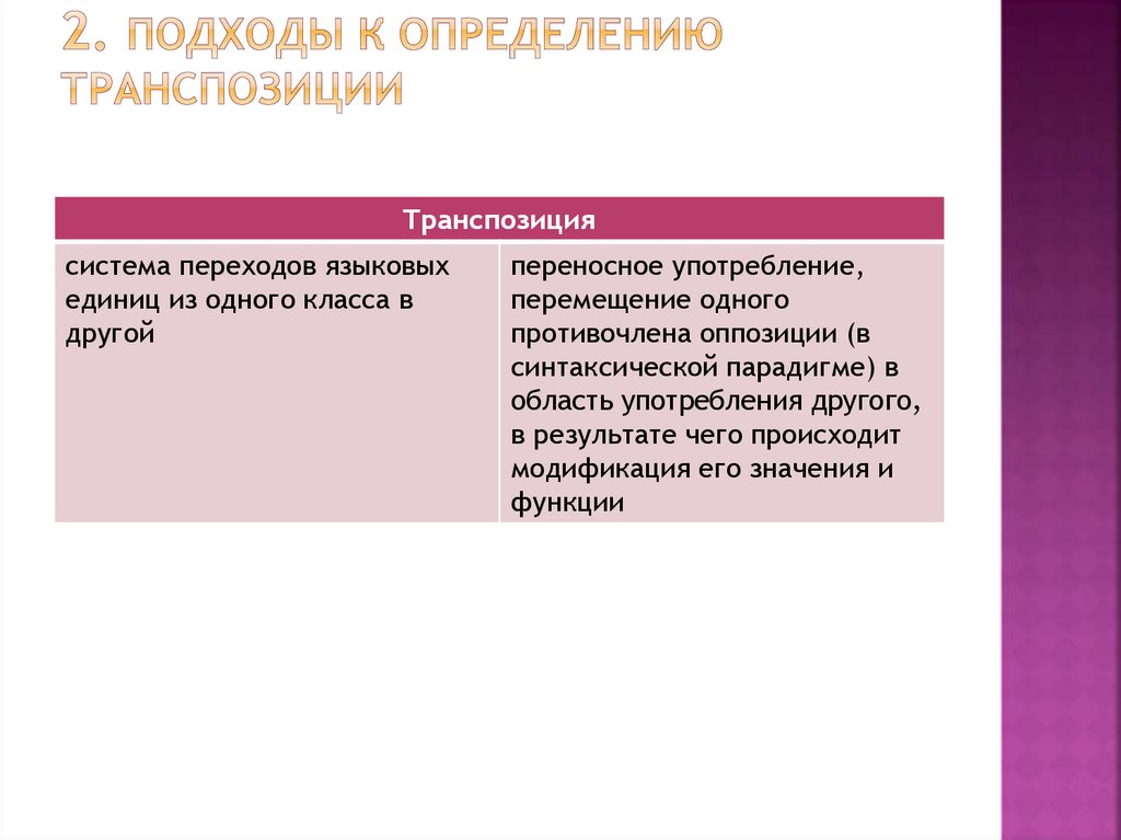 1. Понятие транспозиции в лингвистике.2. Подходы к определению транспозиции.