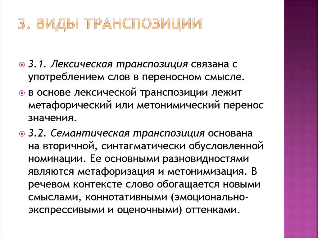 3.1. Лексическая транспозиция связана супотреблением слов в переносном смысле.