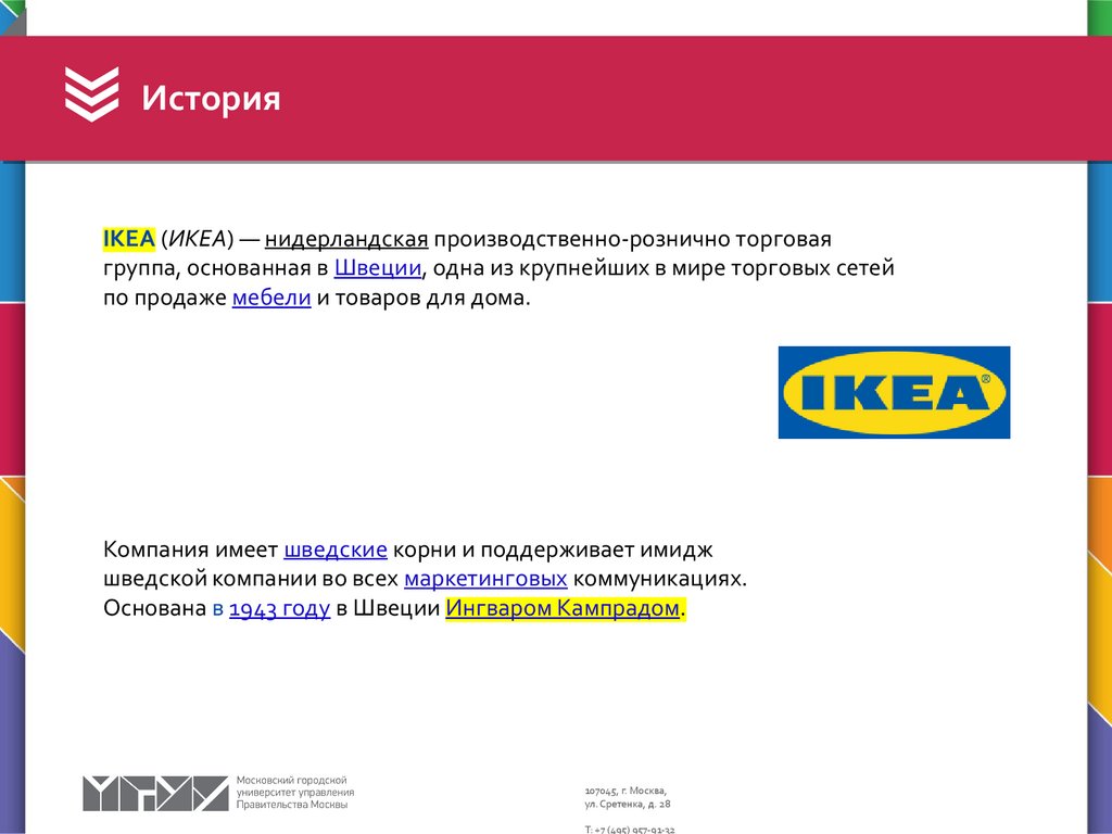 шведской компании во всех маркетинговых коммуникациях.
