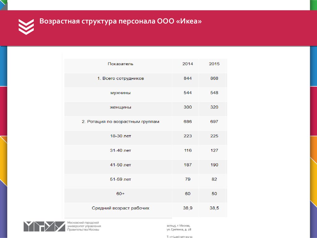 Возрастная структура персонала ООО «Икеа»107045, г. Москва,