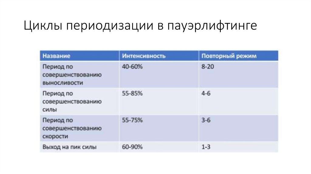 Периодизация тренировочногопроцесса в пауэрлифтинге