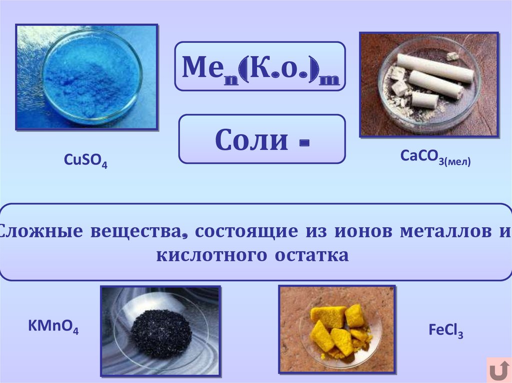 Сложные вещества, состоящие из ионов металлов и