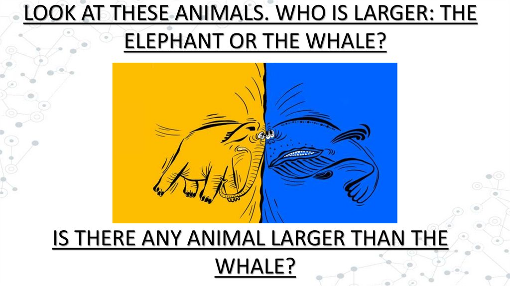 LOOK AT THESE ANIMALS. WHO IS LARGER: THEELEPHANT OR THE WHALE?