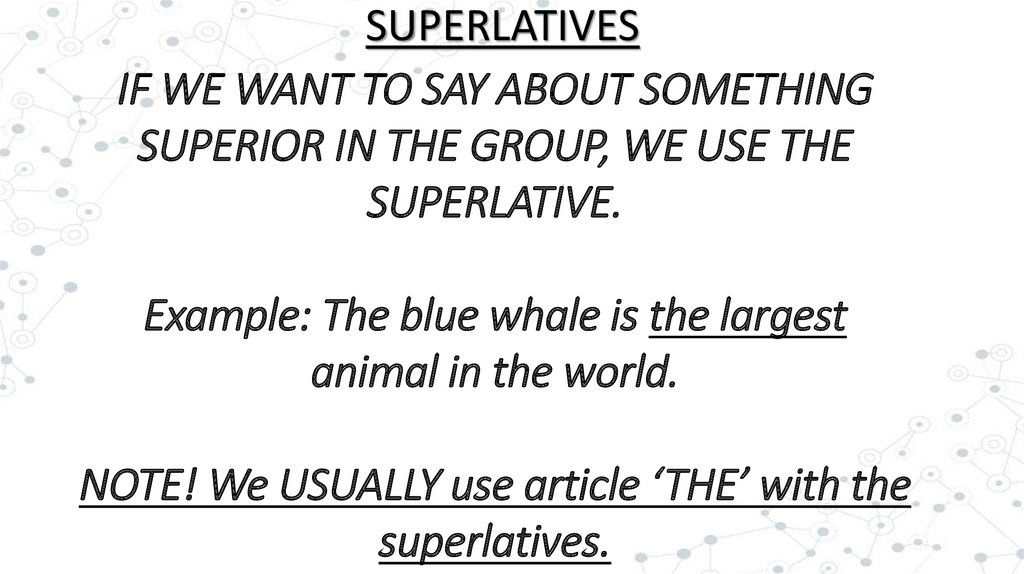 SUPERLATIVESIF WE WANT TO SAY ABOUT SOMETHING