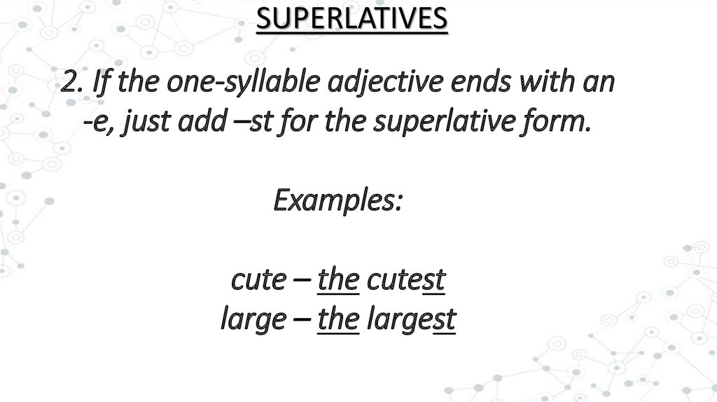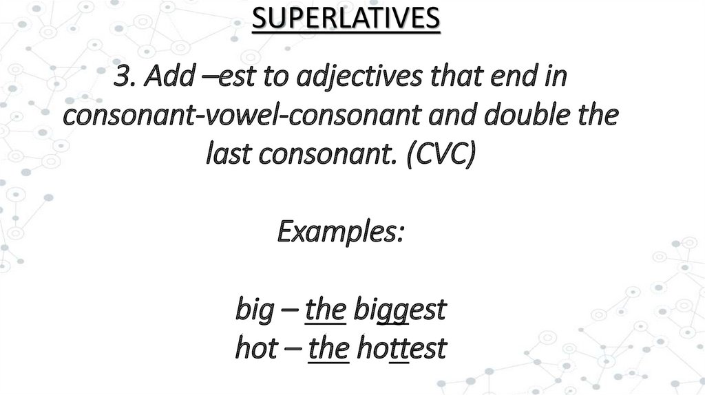 SUPERLATIVES2. If the one-syllable adjective ends with an