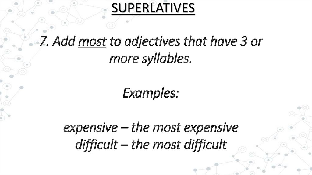 SUPERLATIVES7. Add most to adjectives that have 3 or