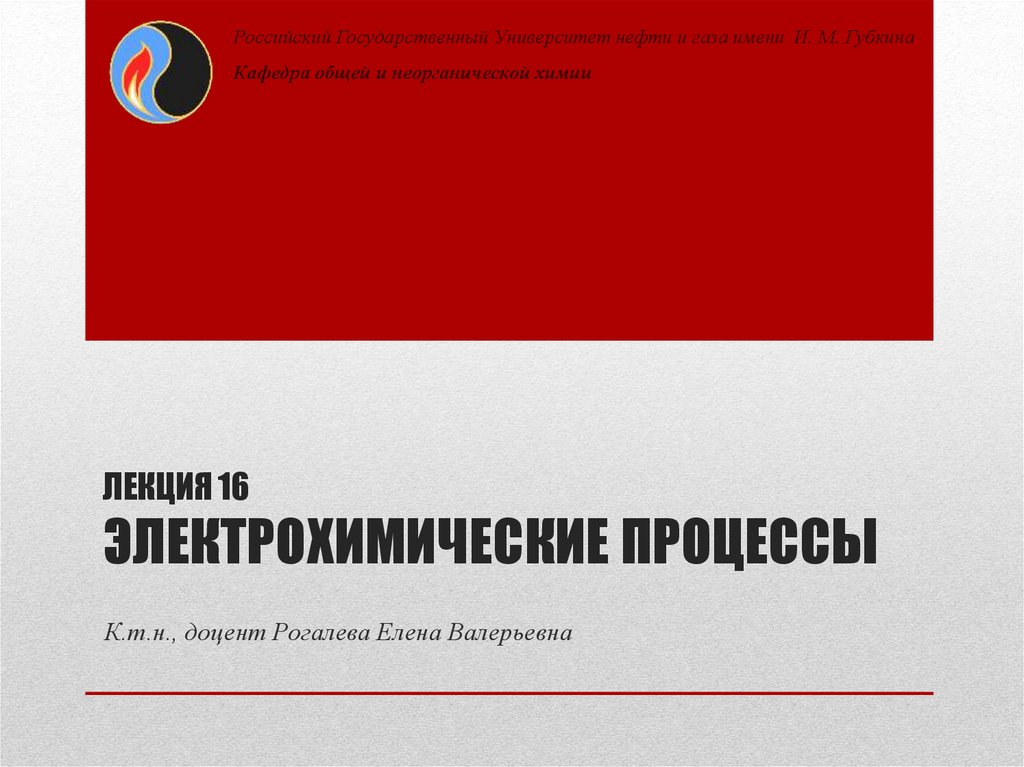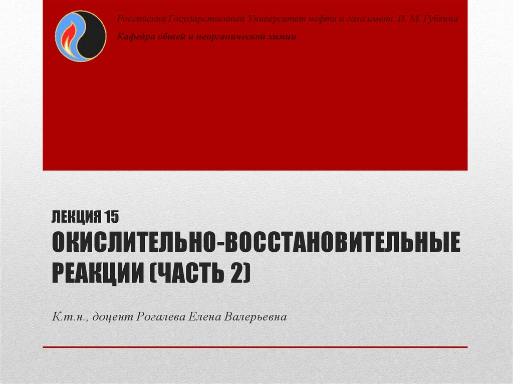 Российский Государственный Университет нефти и газа имени И. М. ГубкинаКафедра общей и неорганической химии