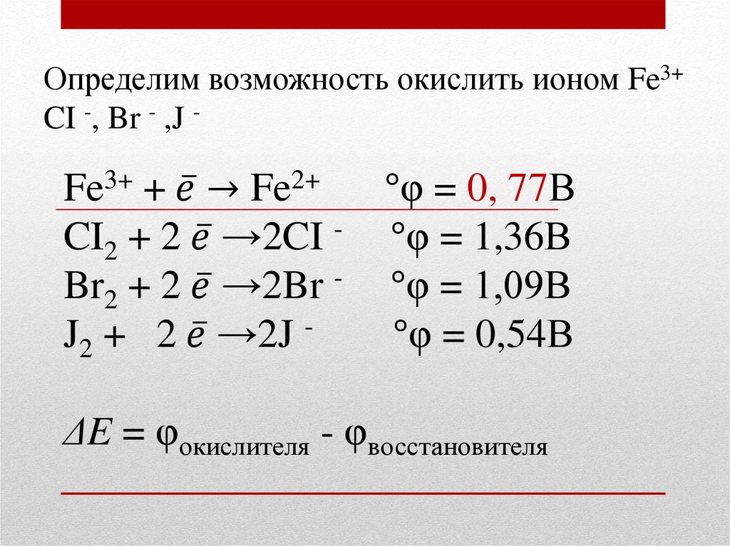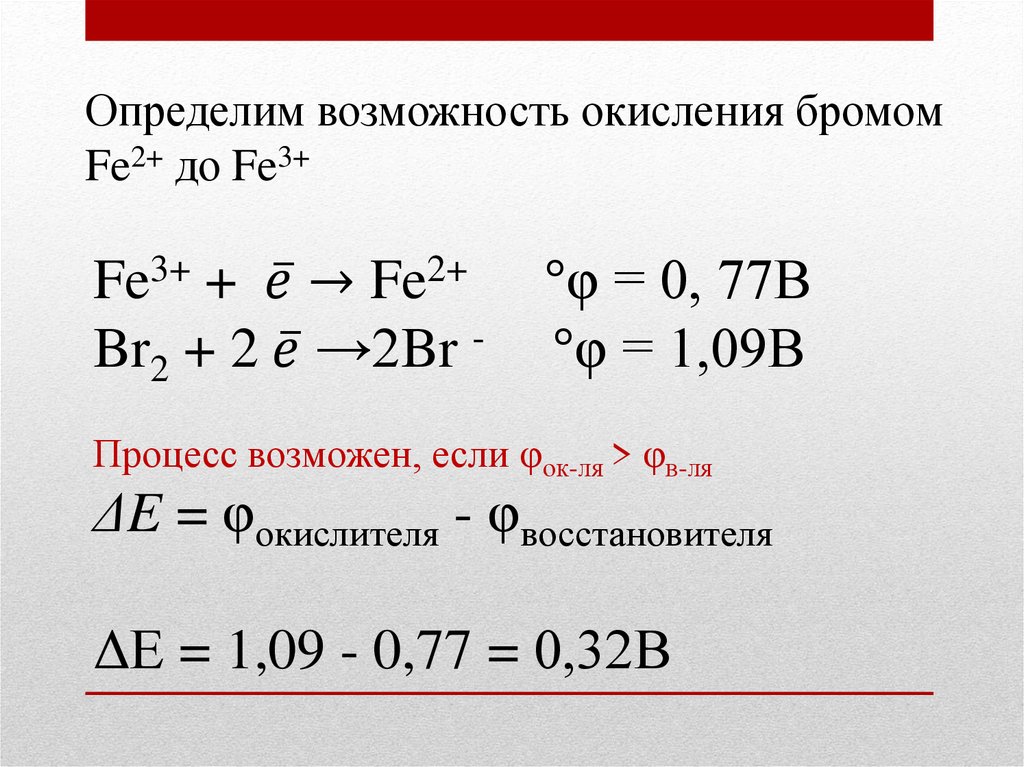 Определим возможность окисления бромомFe2+ до Fe3+