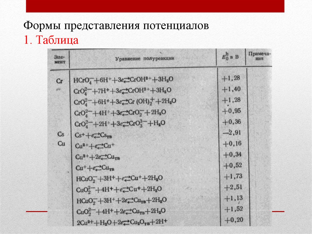 Таблица стандартных окислительновосстановительных потенциаловt = 25℃
