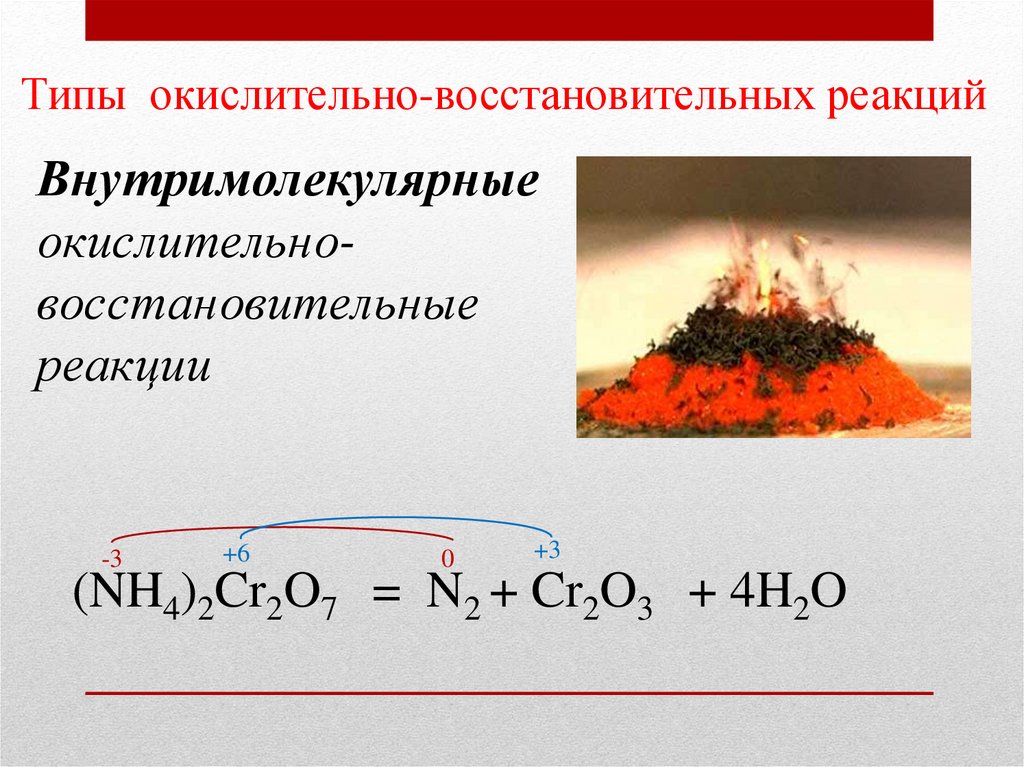 Типы окислительно-восстановительных реакцийВнутримолекулярные