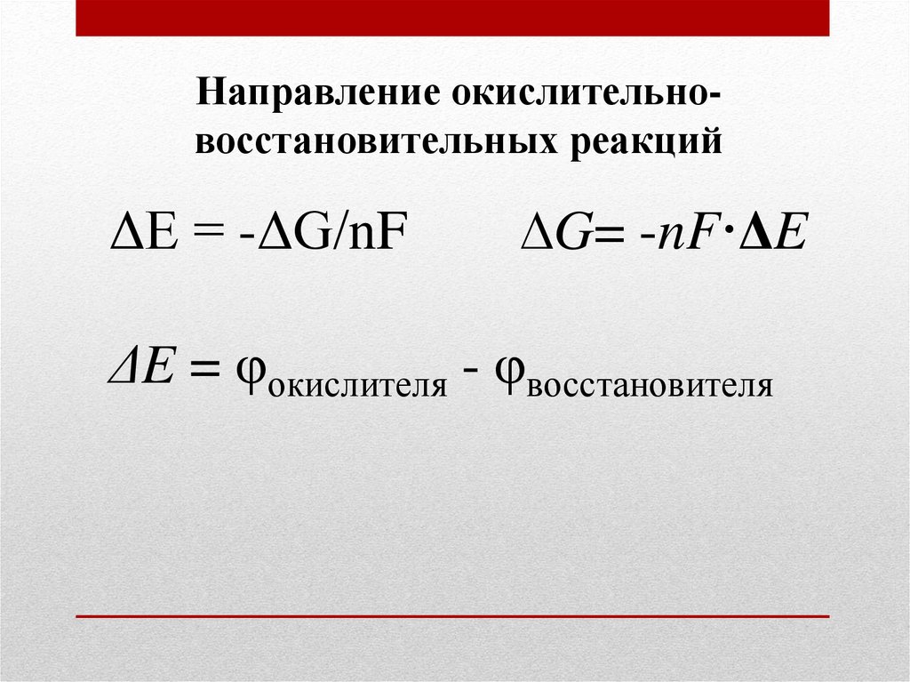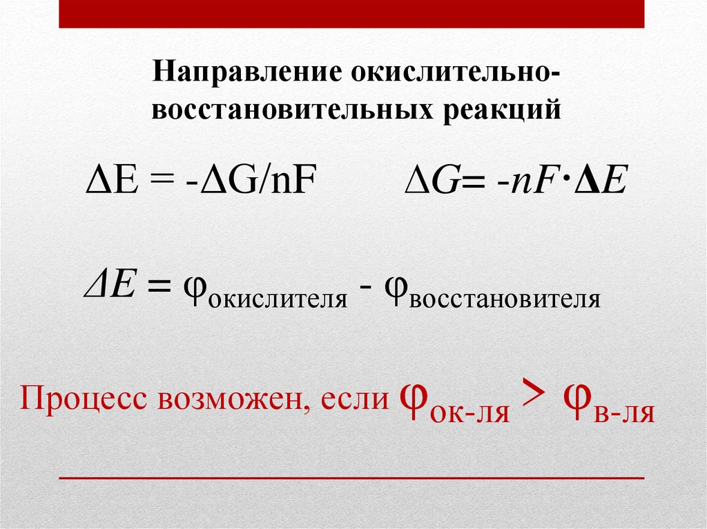 Направление окислительновосстановительных реакцийΔE = -ΔG/nF