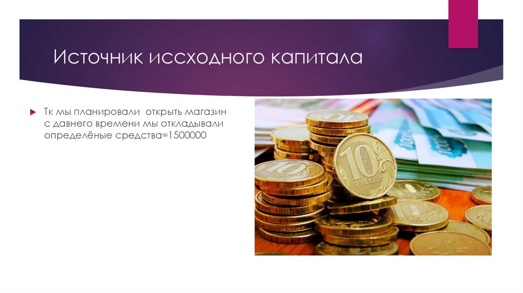 Источник иссходного капиталаТк мы планировали открыть магазин