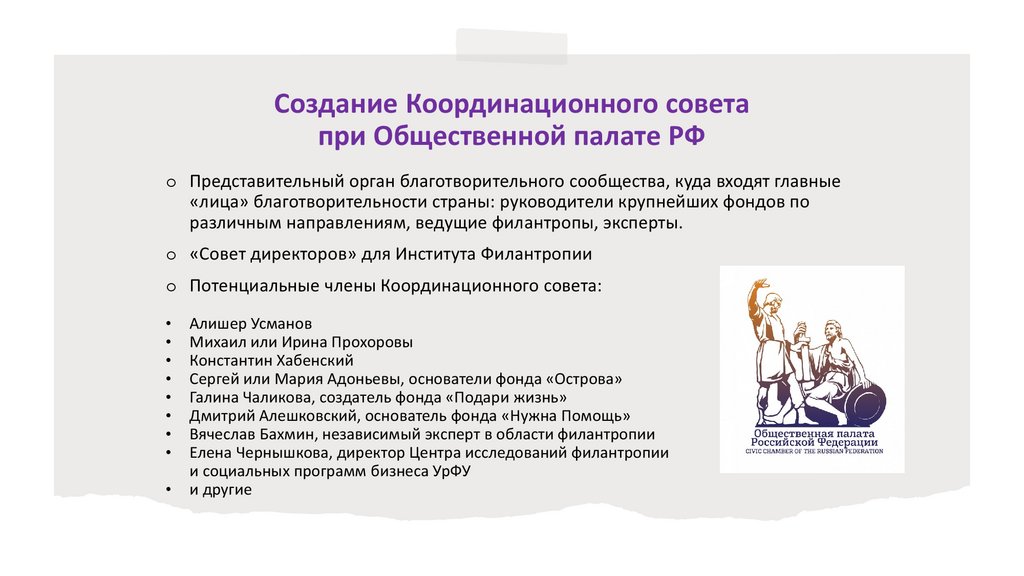 которые могут опираться доноры, фонды и государственные органы. Проводимое