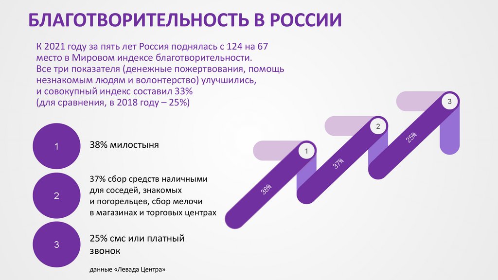 БЛАГОТВОРИТЕЛЬНОСТЬ В РОССИИК 2021 году за пять лет Россия поднялась с 124 на 67