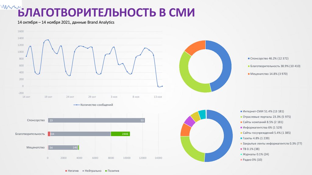 БЛАГОТВОРИТЕЛЬНОСТЬ В СМИ14 октября – 14 ноября 2021, данные Brand Analytics