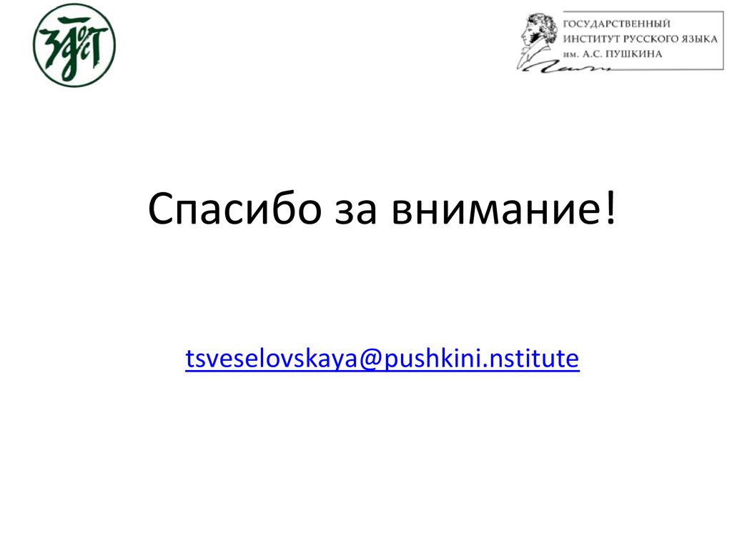 Спасибо за внимание!tsveselovskaya@pushkini.nstitute