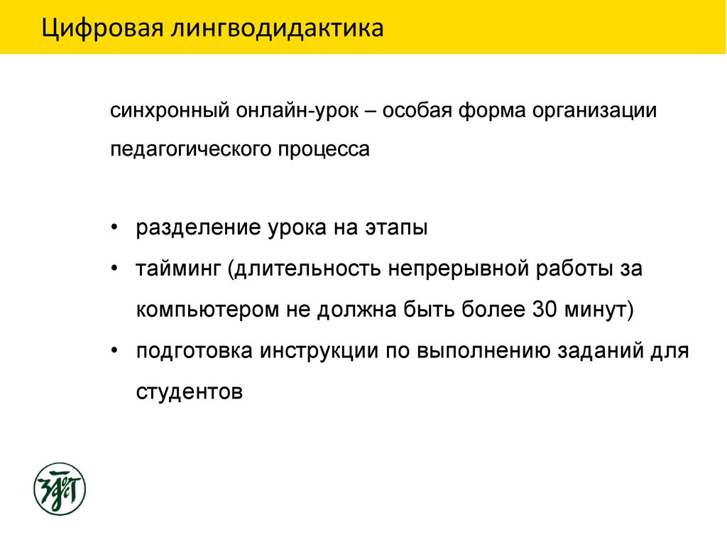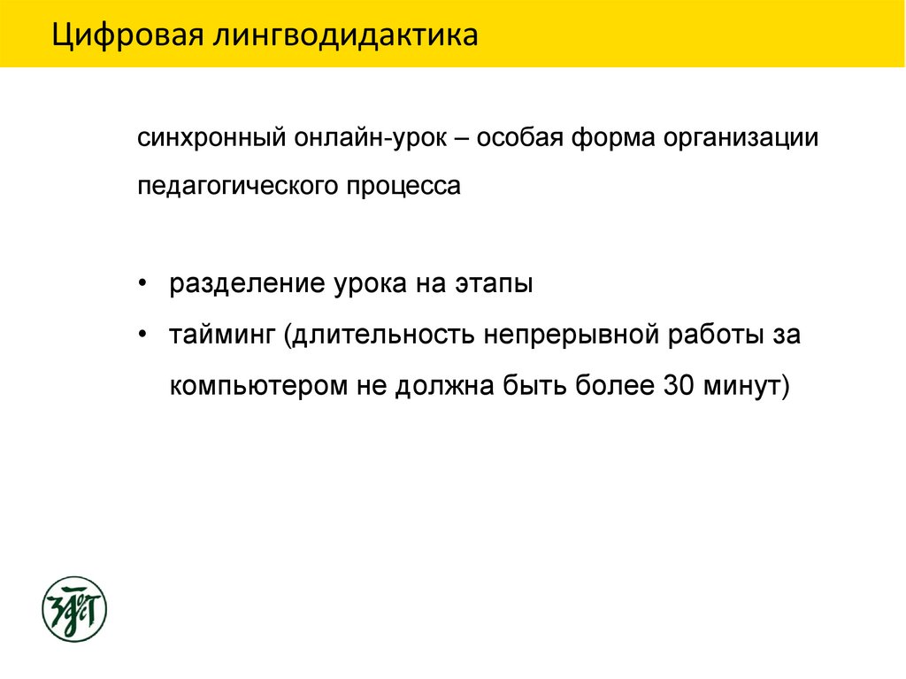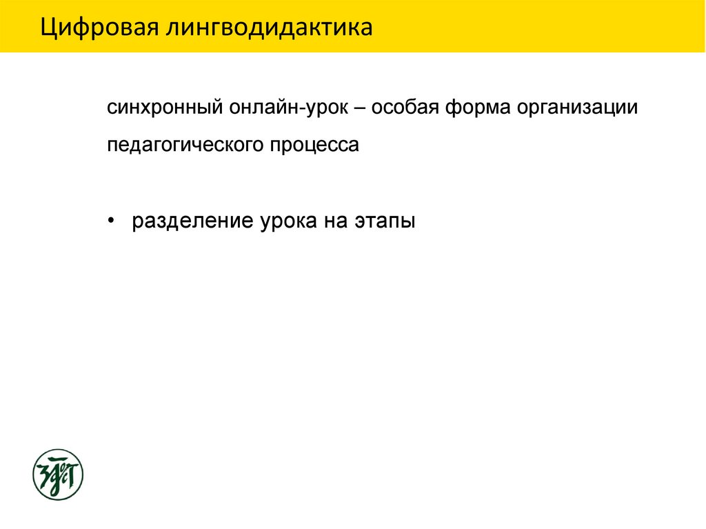 Цифровая лингводидактикасинхронный онлайн-урок – особая форма организации