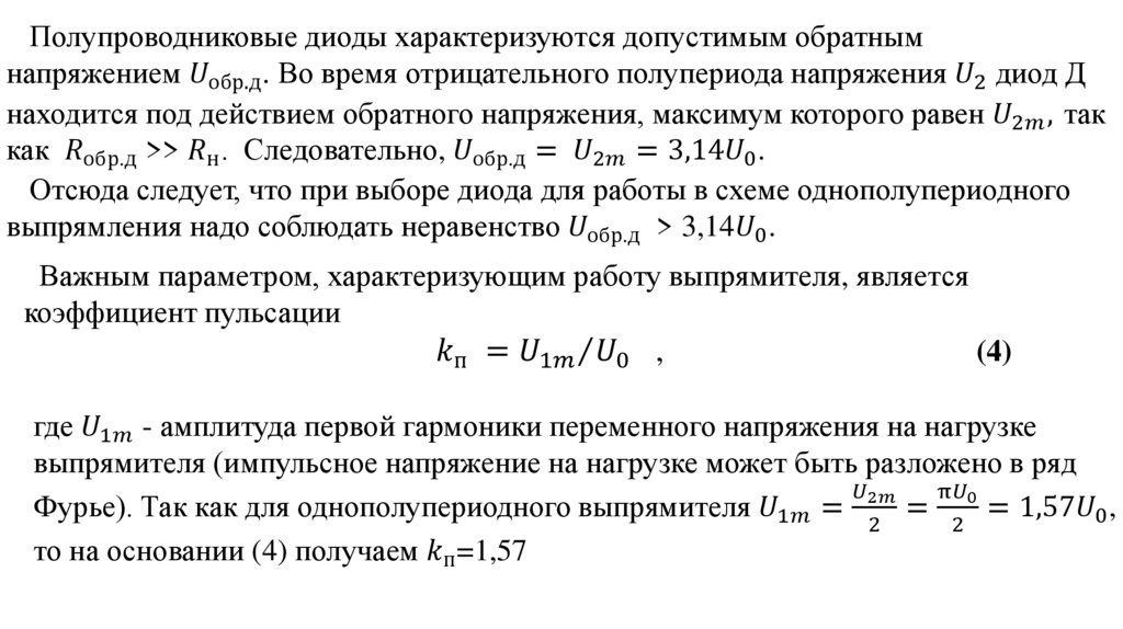 ОДНОПОЛУПЕРИОДНЫЙ ВЫПРЯМИТЕЛЬНа рисунке 2 представлена схема однополупериодного выпрямителя.