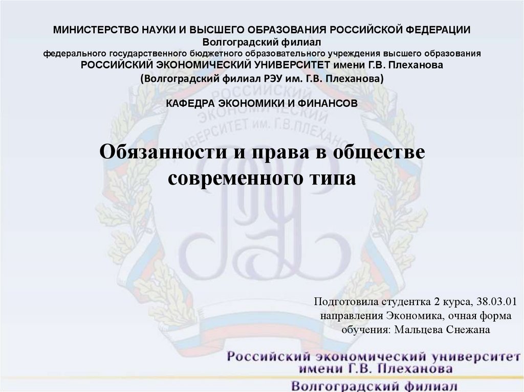 (Волгоградский филиал РЭУ им. Г.В. Плеханова)