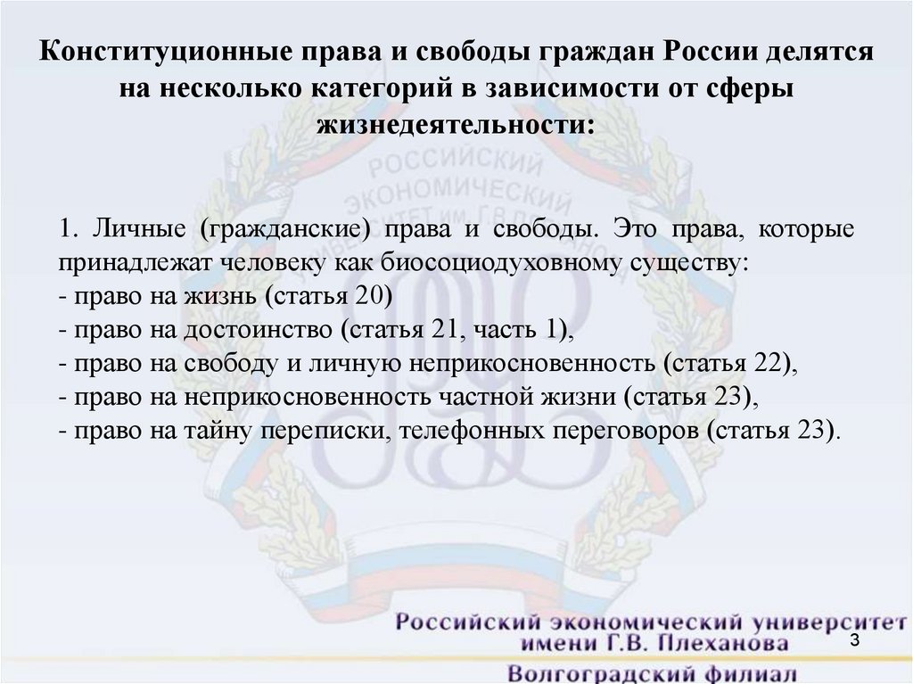 1. Личные (гражданские) права и свободы. Это права, которые