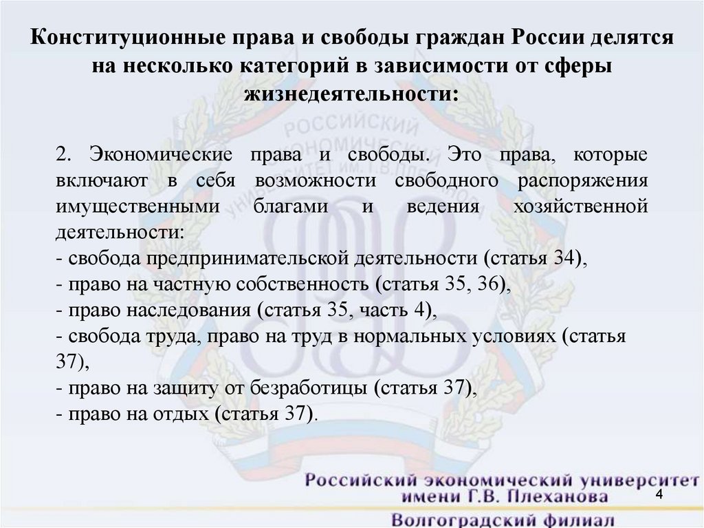 2. Экономические права и свободы. Это права, которые