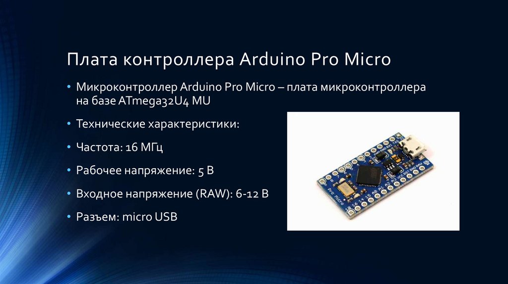 Плата контроллера Arduino Pro Micro• Микроконтроллер Arduino Pro Micro – плата микроконтроллера