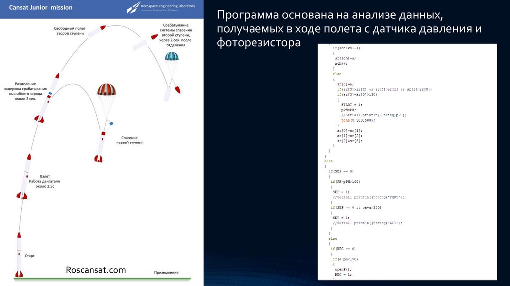 Программа основана на анализе данных,получаемых в ходе полета с датчика давления и