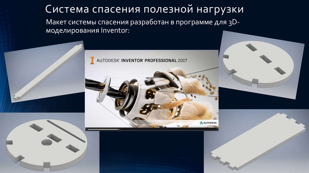 Система спасения полезной нагрузкиМакет системы спасения разработан в программе для 3Dмоделирования Inventor:
