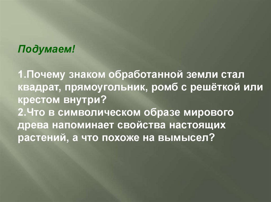 Подумаем!1.Почему знаком обработанной земли стал