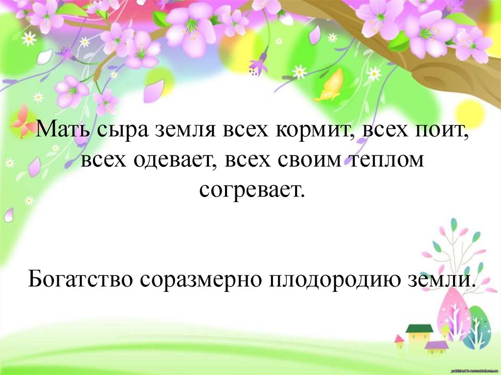 Мать сыра земля всех кормит, всех поит,всех одевает, всех своим теплом
