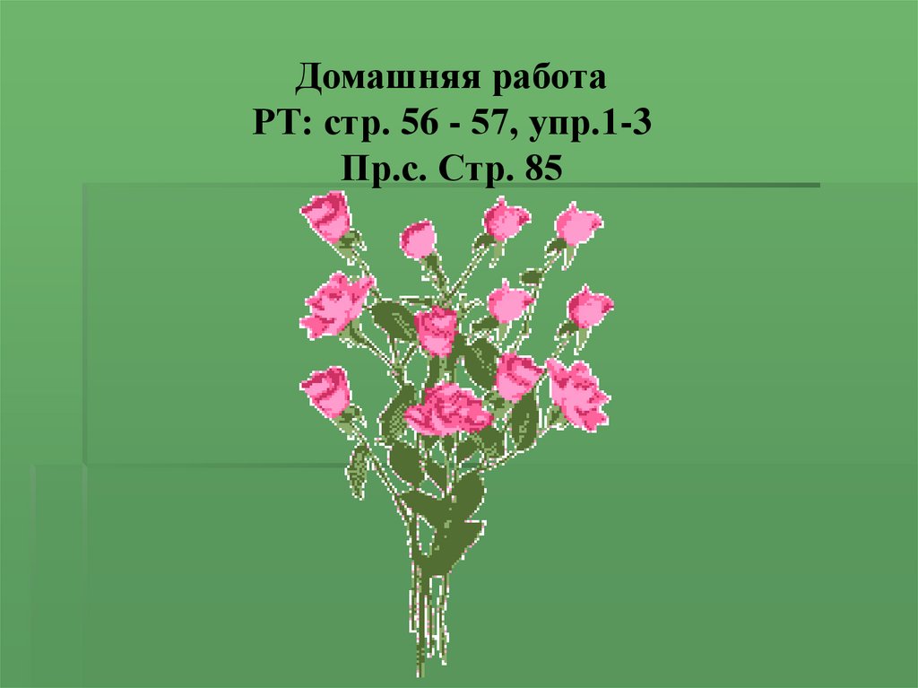 Домашняя работаРТ: стр. 56 - 57, упр.1-3