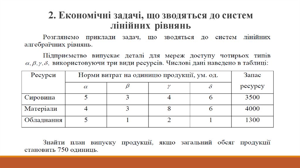 2. Економічні задачі, що зводяться до системлінійних рівнянь